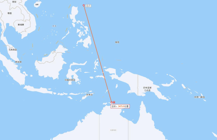 这则消息在我看起来实际上是有些莫名其妙的,因为他们提到的这个位置实在是太远了点,吕宋岛以东大约480公里处,这个位置实际上也就是我们的海军刚刚进入西太平洋。从下面的地图示意上就能够看到,这里距离澳大利亚还有至少3400公里以上,距离新西兰就更远了。而且,从这样的一个起点上,解放军的这支编队有很多的方向可以选择,并不一定非得前往澳大利亚附近的海域。但是新西兰的这家公司在公布消息的时候却有意无意的提到这支战舰编队抵近澳大利亚附近的可能,至于这么敏感吗?