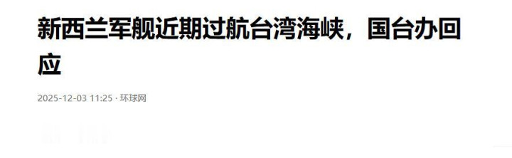 新西兰方面为什么如此关注这件事情呢?在我看来可能和近期发生的一件事情有关。12月3号当天上午,我国相关单位的发言人回应了近期新西兰海军的一艘补给舰通过我国台海海峡期间解放军全程跟踪监视的相关话题。我们明确指出,台岛问题属于我们的内政,有关国家的行为向独立势力发出错误信号,我们坚决捍卫国家主权和领土完整,维护台海和平稳定。也就是说,解放军对于从我们台海海峡通过的那艘新西兰战舰,没有客气,该监控的监控,该处理的处理。